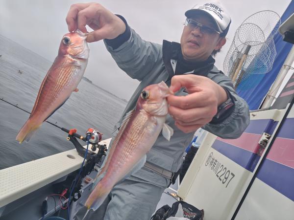 釣果アジ21〜37cm3〜18匹・アマダイ22〜25cm0〜1枚(中サイズ水面で針から、、)ホウボウ30〜35cm0〜2匹・中サバ0〜3本・イトヨリ、クロムツ・カサゴ・カナガシラ