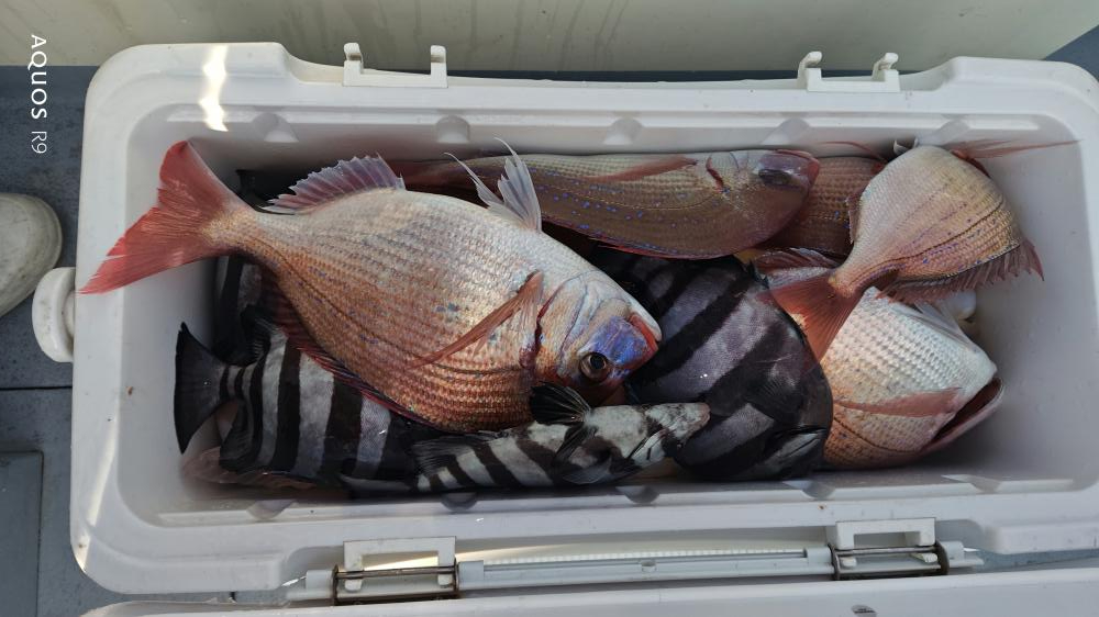 アジは大漁に居てアジ泳がせて遊んだお客さんヒラメ2枚即ゲットシマシマハナダイ型みただけでした。
