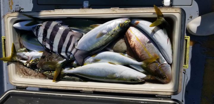 イナダはバッチリ!マグロ用クーラーに入りきれず!良型サイズのマアジもしっかりお土産に!