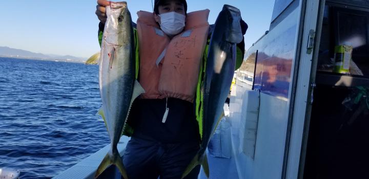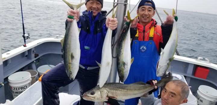 釣果イナダ38~47㎝2~24本・ワラサ3.3k~4.5k0~2本(2本が4人)・スズキ3.1k・イシダイ・カワハギ・イサキ・カサゴ・ヒラソーダ・アジ