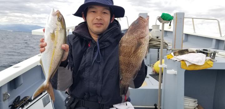 釣果イナダ36~45㎝3~15本(沢山居るのでイナダ釣る気ある方ならもっともっと沢山釣れますよ)・イシダイ0.4~0.7k0~5枚・アマダイ20~30㎝0~2枚・ヒラメ・カンパチ・オウモンハタ・カワハギ・カサゴ・イトヨリ・ヒラソーダ・アジ