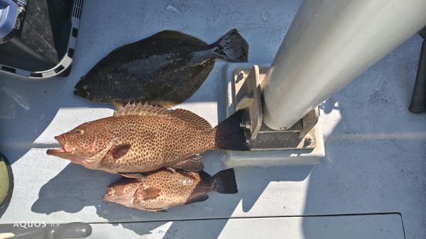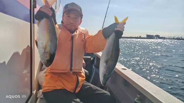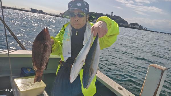 釣果イナダカンパチ38〜43cm0〜5本・カイワリ0〜3枚・イトヨリ0〜1枚・サバ0〜5本・アジ3〜16匹他