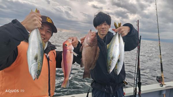 釣果イナダ38〜43cm0〜2本・アマダイ22〜39cm0〜2枚・ハナダイ18〜27cm3〜12枚・イトヨリ24〜27cm0〜2枚