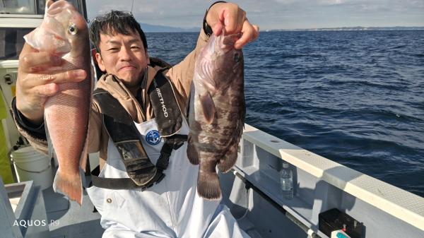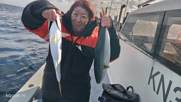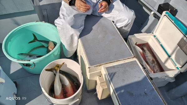 小アジクロダイシマシマハナダイカワハギカサゴ後イナダ釣りに行くメニューですが、風強すぎてイナダポイント棄権シロアマダイ狙い浅場水深40m流しとりあえずシロアマダイ確保他マハタホウボウイトヨリカサゴダルマカレイトラギス後今が旬のイナダを釣りに皆さん強い引きで喜んで頂き47〜55cm4〜9本(4号ハリス切れどころか6号ハリス切れもワラサも交じってるとの事)アジ泳がせて遊んでも宜しいと!