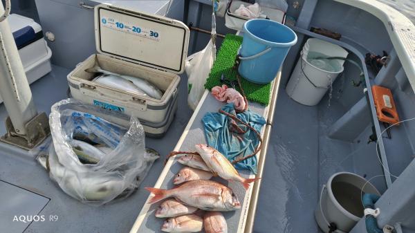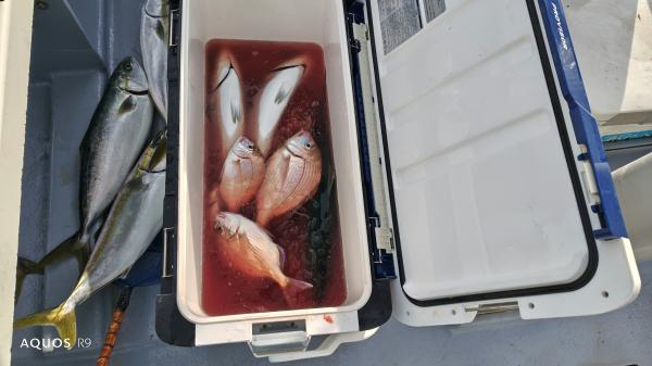 釣果ハナダイ20〜34cm0〜7枚・イナダ47〜55cm3〜13本・アジ16〜21cm6〜20匹・ヒラソーダ0〜3本・キントキ・カサゴ