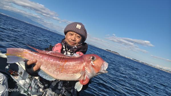 釣果アマダイ25〜48cm0〜3枚・オニカサゴ30〜35cm0〜1匹・ホウボウ28〜33cm0〜2枚・イトヨリ25〜33cm0〜1枚・レンコダイ0〜3枚他